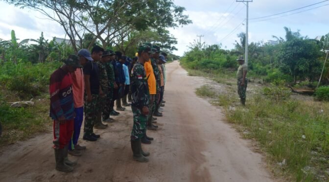 Satgas TMMD Kodim 1014/Pbn dan Warga Gelar Apel Pagi Sebelum Gotong Royong Bersihkan Jalan Desa