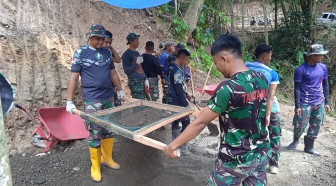 Melihat semangat anggota Satgas TMMD, warga setempat pun ikut terpanggil untuk membantu. Beberapa warga turun langsung ke lokasi untuk membantu mengayak pasir serta mengangkut material, menunjukkan semangat gotong royong yang terus hidup di tengah masyarakat.