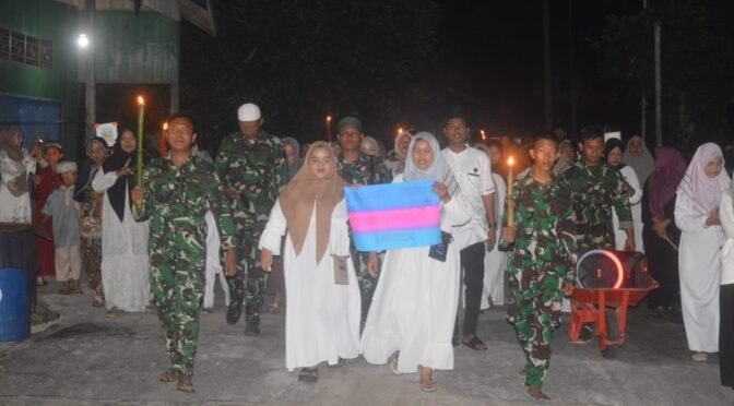 Sukamara – Wujud kedekatan Personil Satgas TMMD ke 123 Kodim 1014/Pbn dengan warga dalam rangka menyambut bulan suci ramadhan 1446 H, personil satgas TMMD turut memeriahkan pawai obor yang diselenggarakan oleh masyarakat setempat, Jumat malam ( 28/02/2025).