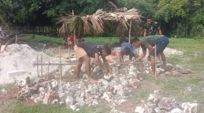 Satuan Tugas (Satgas) TNI Manunggal pembangunan Desa (TMMD) ke-123 Kodim 1601/Sumba Timur, mulai membuat pondasi pembangunan MCK umum di Desa Kaliuda, Kecamatan Pahunga Lodu, Kabupaten Sumba Timur. Selasa (04/03/2025)