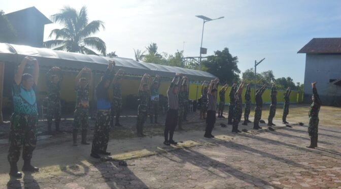 Sukamara – Sebelum memulai pekerjaan di sasaran fisik, personel Satuan Tugas (Satgas) TNI Manunggal Membangun Desa (TMMD) ke-123 Kodim 1014/Pbn melaksanakan apel pagi dan senam peregangan di lokasi TMMD, Desa Nibung, Kecamatan Jelai, Kabupaten Sukamara, Selasa (04/03/2025).
