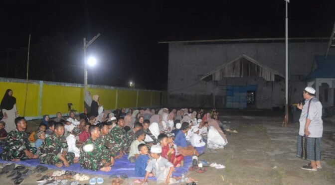 Seperti yang dilakukan oleh Personel Satgas TMMD, yang ikut berbaur bersama remaja Masjid desa setempat saat mengikuti pengajian dalam mengisi kegiatan di bulan Ramadhan, Senin malam (03/03/2025).