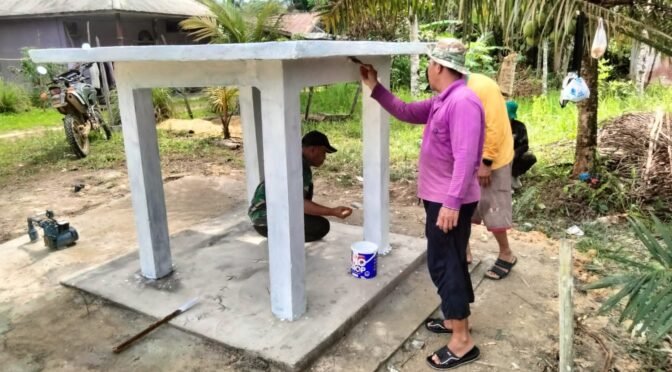 Sertu Jatendra juga menyampaikan kegiatan tersebut dari pembuatan rangka tandon sampai sekarang tahap pengecatan di bantu masyarakat saling bergotong royong dalam pengerjaannya.