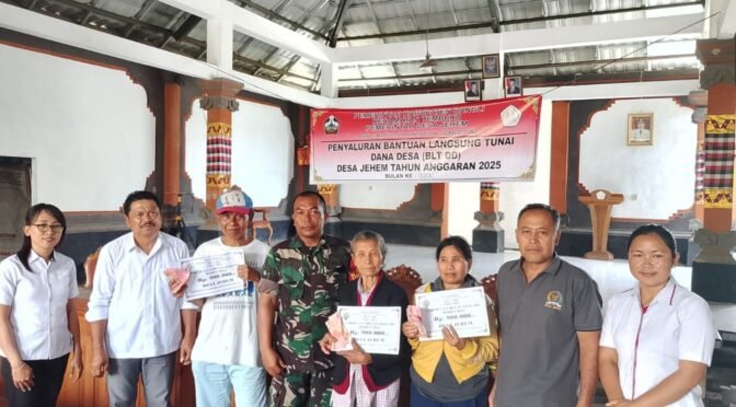 Bangli – Bertempat di Kantor Desa Jehem Kecamatan Tembuku, Kabupaten Bangli, Babinsa Desa Jehem Koramil 03/Tembuku Kodim 1626/Bangli Sertu Kadek Muliana melaksanakan pemantauan dan pendampingan penyaluran BLT (Bantuan Langsung Tunai) Dana Desa tahap I, II, dan III Bulan Januari sampai dengan bulan Maret tahun 2025 kepada warga Desa Jehem yang kurang mampu dan sakit menahun. senin (10/03/25)