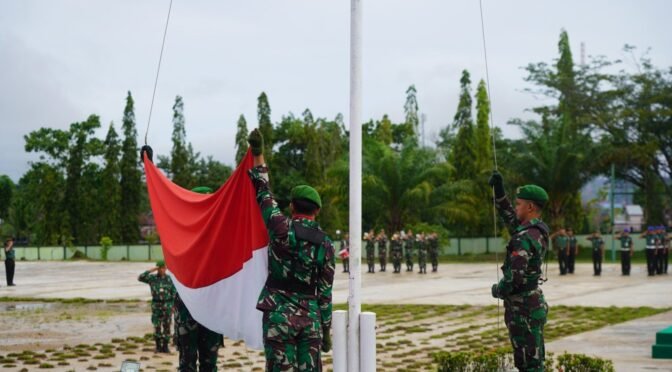 Sintang – Kasi Log Kasrem 121/Abw Kolonel Cba Agung Prasetya, sebagai Inspektur Upacara memimpin jalannya upacara bendera yang dilaksanakan di lapangan Makorem 121/Abw, Sintang, Kalimantan Barat, Senin (10/03/2025).