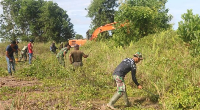 Tarakan – Satgas TNI Manunggal Membangun Desa (TMMD) ke-123 Kodim 0907/Trk memperluas jangkauan kegiatan dengan membuka lahan untuk Program Ketahanan Pangan (Hanpangan), diwilayah RT.21 Kel.Juata Permai,Kec.Tarakan Barat,Selasa(25/02/2025).