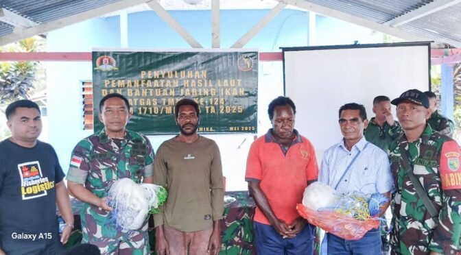 Satgas TMMD ke-124 Kodim 1710/Mimika menggelar penyuluhan pemanfaatan hasil laut kepada nelayan. Kegiatan ini bertujuan untuk meningkatkan pengetahuan dan keterampilan nelayan dalam memanfaatkan hasil laut secara optimal. Kegiatan penyuluhan digelar di Kampung Pigapu, Distrik Iwaka, Kab. Mimika. Rabu, (14/5/2025)