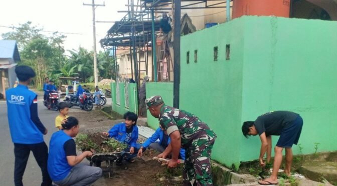Babinsa Koramil 08/Bontonompo Gelar Karya Bakti Pembersihan Saluran Air Bersama Mahasiswa KKN UNISMUH Makassar