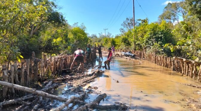 Barito Selatan – Meskipun air menggenang hampir setinggi lutut, semangat Satgas TMMD Kodim 1012/Buntok dalam menyelesaikan pembangunan jalan di Desa Talio, Kecamatan Karau Kuala, Kabupaten Barito Selatan, tetap tak tergoyahkan. Kondisi medan yang basah dan berlumpur akibat genangan air bukan menjadi penghalang bagi para personel untuk terus melanjutkan pengerjaan sasaran fisik TMMD ke-124 ini.