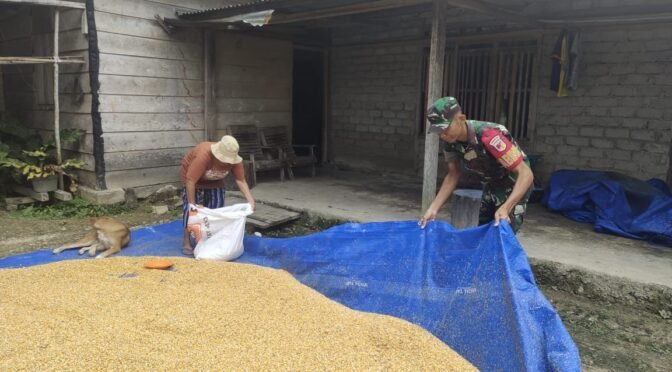 Kodim Poso, – Sebagai wujud kepedulian terhadap masyarakat, Kopda Evan Moula, anggota Koramil 1307-11/Pamona Selatan, melaksanakan komunikasi sosial (komsos) dengan membantu warga dalam proses penjemuran jagung milik Ibu Leruntowe. Kegiatan ini berlangsung di Desa Panjo, Kecamatan Pamona Selatan, Kabupaten Poso. Senin, (24/2/2025).