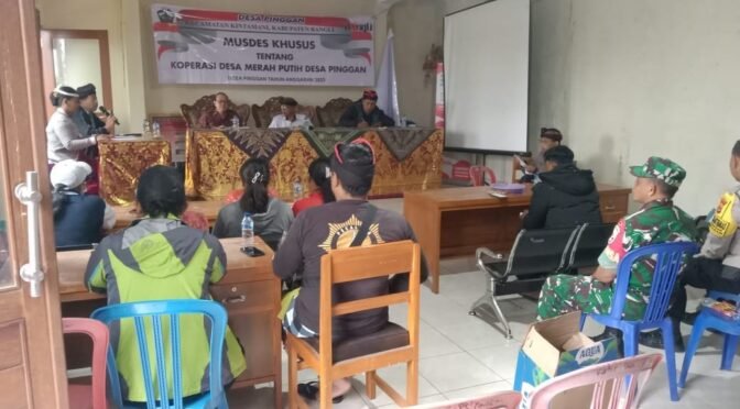 Bangli— Dalam rangka memperkuat sinergi pembangunan desa serta mendukung upaya percepatan penanganan stunting, Babinsa Desa Pingan, Serka Dewa Nyoman Alit Adnyana, menghadiri Musyawarah Desa Khusus (Musdessus) tentang Koperasi Merah Putih (KDMP) Tahun Anggaran 2025 dan pembahasan Rembuk Stunting.