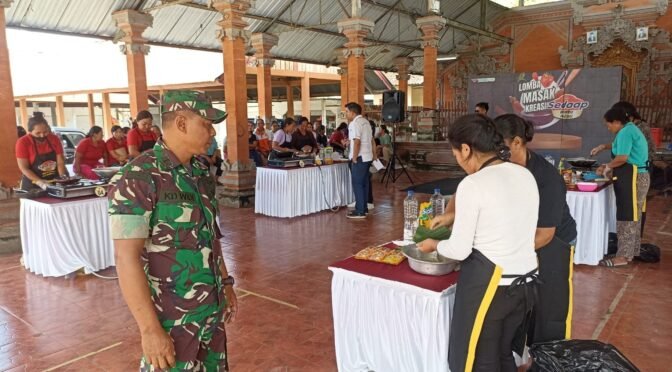 Bangli – Bertempat di wantilan Desa adat Bangbang Kec. Tembuku Kabupaten Bangli Babinsa Desa Bangbang Koramil 1626-03/Tembuku Kodim 1626/Bangli Pelda Kadek Widiarta melaksanakan pemantauan dan pengamanan kegiatan lomba masak kreasi oleh ibu-ibu PKK Desa Bangbang yang diselenggarakan oleh PT Wings Food. senin (03/03/25)