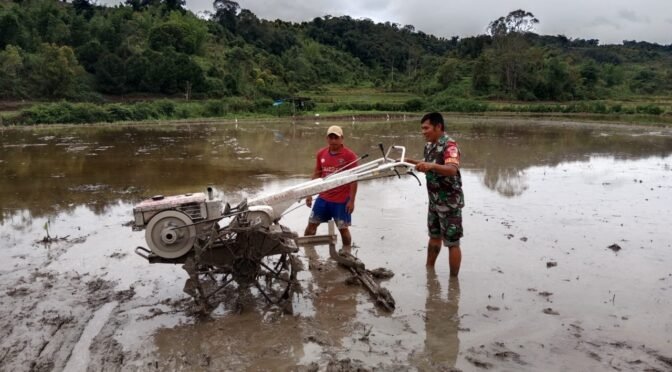 Kodim Poso, – Dalam upaya mendukung program ketahanan pangan dan mempererat silaturahmi dengan masyarakat, Serma Christian, anggota Koramil 1307-02/Pamona Puselemba, melaksanakan pendampingan pengolahan lahan persawahan milik Bapak Dama Pomounda. Kegiatan ini berlangsung di lahan persawahan Desa Kelei, Kecamatan Pamona Timur, Kabupaten Poso, dengan luas lahan mencapai 40 are.