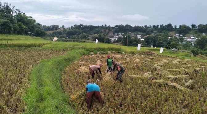 Wujud dukungan TNI khususnya prajurit kewilayahan yaitu Babinsa dalam mendukung ketahanan pangan, dengan Semangat ikut serta terjun langsung ke sawah bantu para petani desa binaannya saat memanen padi, inilah yang dilakukan oleh Babinsa kepada para petani warga desa binaannya.