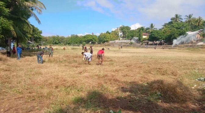 Flotim – Dalam upaya meningkatkan kepedulian terhadap lingkungan serta mempererat hubungan antara TNI dan masyarakat, Babinsa Koramil 1624-05/Solor, Sertu Edison bersama Praka Kadek Putra, melaksanakan kegiatan Karya Bakti pembersihan lapangan sepak bola di Desa Lemanu, Kecamatan Solor Selatan, Kabupaten Flores Timur, Selasa (13/05/2025).