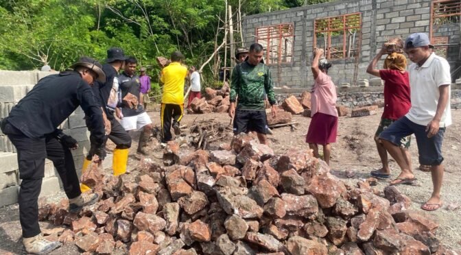 Lanaus, TTU – Terik matahari yang membakar tak menyurutkan semangat Personel Satgas TMMD Ke-123 Kodim 1618/TTU bersama masyarakat Desa Lanaus dalam membangun gedung baru SDN Lanaus, Kecamatan Insana Tengah, Kabupaten Timor Tengah Utara (TTU). Dengan penuh dedikasi, mereka bahu-membahu mengangkat dan menyusun batu merah, menandai langkah awal bagi kemajuan pendidikan di desa tersebut.