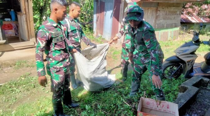 SINJAI. Dalam upaya menciptakan lingkungan yang bersih dan sehat, personel Satuan Tugas (Satgas) TNI Manunggal Membangun Desa (TMMD) ke-123 Kodim 1424/Sinjai bersama warga melaksanakan kegiatan pembersihan sampah yang berserakan di Pasar Tradisional Careha, Desa Lamatti Riaja, Kecamatan Bulupoddo, Kabupaten Sinjai. Kegiatan ini bertujuan untuk mencegah penyebaran penyakit serta meningkatkan kesadaran masyarakat dalam menjaga kebersihan lingkungan, Selasa (25/02/2025)
