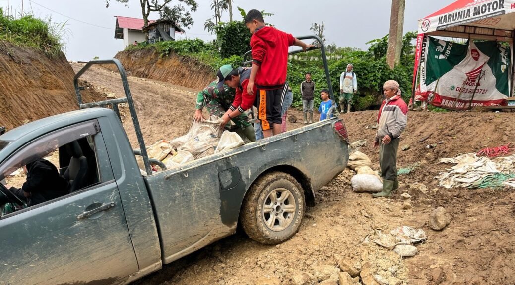 Agam – Meski cuaca sering diguyur hujan, semangat gotong royong Anggota Satgas TMMD Ke-123 Kodim 0304/Agam bersama masyarakat dalam menyelesaikan melansir Sirtu pembangunan Jalan di Jorong ilalang, Nagari lV Koto, Kabupaten Agam,Sabtu, (01/03/2025).