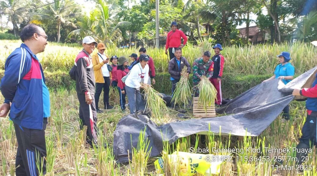 Klungkung,- Dalam rangka untuk mengetahui hasil panen tanaman padi milik para petani, Babinsa Nyalian Kopda Gede Raka mendampingi Dinas pertanian melaksanakan pengambilan data ubinan padi di Tempek Punya, Subak Gombeng Kelod Desa Nyalian, Rabu ( 12/03/25 ).