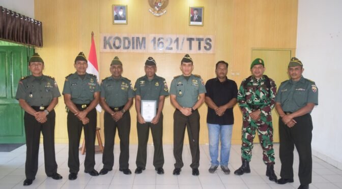 “Atas nama pribadi dan Satuan saya mengucapkan terima kasih yang sebesar-besarnya kepada Serda Frederick Rassi yang akan melaksanakan pindah tugas di Kodim 1604/Kupang atas dedikasi dan pengabdian selama berdinas untuk kemajuan Kodim 1621/TTS”, ujar Dandim.