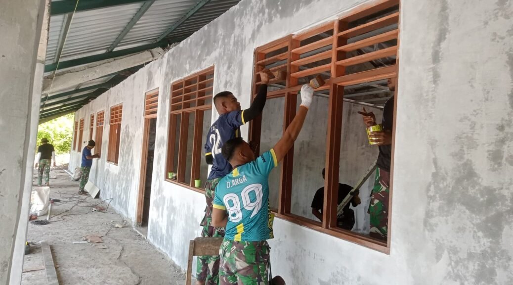Kopda Viktor A. Kaju, yang turut mengecat kusen jendela, menegaskan bahwa kualitas menjadi prioritas utama. “Kami memastikan setiap tahap pengerjaan dilakukan dengan maksimal agar hasilnya bisa bertahan lama dan memberikan kenyamanan bagi para siswa,” katanya.
