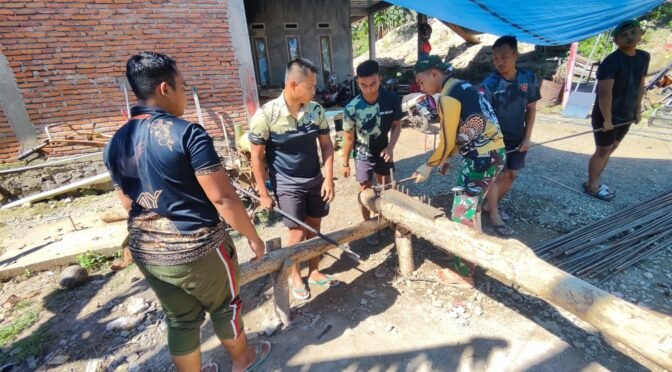 Selain personel TNI, warga setempat juga turut serta membantu dalam proses pengerjaan. Mereka bekerja sama mengangkat, memotong, dan mengikat besi dengan penuh semangat gotong royong. Kehadiran masyarakat dalam proses pembangunan ini menunjukkan antusiasme tinggi dan rasa memiliki terhadap infrastruktur yang sedang dibangun.