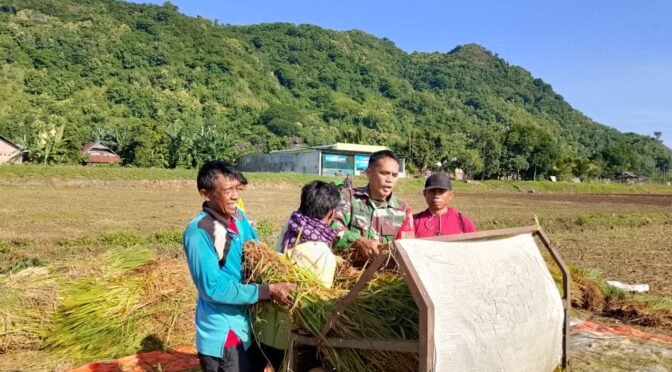 Sakuru-Bima, 25 Februari 2025 – Dalam upaya mendukung program ketahanan pangan nasional, Serda Sulaiman, Babinsa Desa Sakuru, Koramil 1608-07/Monta, turun langsung membantu petani dalam kegiatan panen padi di So Lapa, Desa Sakuru, Kecamatan Monta, Kabupaten Bima. Kegiatan ini menjadi bukti nyata peran TNI dalam mendukung kesejahteraan masyarakat, khususnya di sektor pertanian, demi mewujudkan swasembada pangan di tingkat lokal.