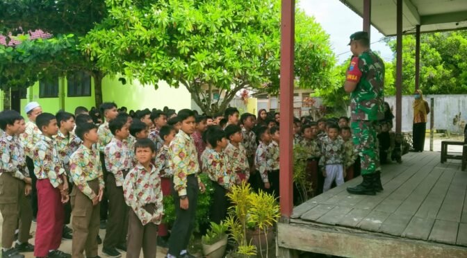 Pangkalan Bun – Dalam rangka menanamkan rasa cinta tanah air sejak dini, anggota Satuan Tugas (Satgas) TNI Manunggal Membangun Desa (TMMD) ke-123 Kodim 1014/Pbn melaksanakan kegiatan non-fisik berupa pembekalan wawasan kebangsaan kepada siswa-siswi SDN 1 Kuala Jelai, Kamis (13/03/2025).