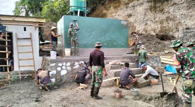 Satgas TMMD bersama warga bahu-membahu menyelesaikan tahapan akhir pembangunan ini. Selain pengecatan, tim juga melakukan pengecekan akhir untuk memastikan bak penampungan air siap digunakan secara maksimal setelah program TMMD selesai.