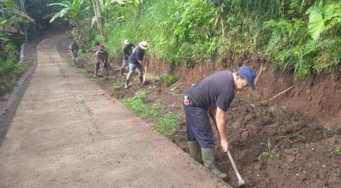 TABANAN – Suara ayunan cangkul terdengar jelas saat warga dan Satgas TMMD ke-123 Kodim 1619/Tabanan bahu-membahu menggali tanah di sisi kanan dan kiri jalan. Pekerjaan ini dilakukan untuk membangun drainase yang akan mendukung infrastruktur jalan yang sedang dibangun dalam program TMMD ke-123.
