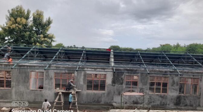 NTT – KEFAMENANU, Jumat (07/03/2025)., Semangat gotong royong antara Satgas TMMD Ke-123 Kodim 1618/TTU dan warga Desa Lanaus membuahkan hasil nyata. Empat ruang kelas baru SDN Lanaus kini semakin terlihat megah dan kokoh. Proses pembangunan memasuki tahap akhir, dengan pemasangan atap seng sebagai bagian dari penyelesaian konstruksi.