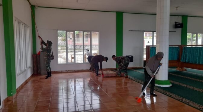 Agam – Menyambut datangnya bulan suci Ramadhan 1446 H Tahun 2025, Satgas TMMD Ke-123 Kodim 0304/Agam membantu warga membersihkan Masjid Medan Suri agar dapat dengan khusyuk saat beribadah, bertempat di Jorong Pahambatan, Nagari Balingka, Kabupaten Agam, Kamis (27/02/2025).