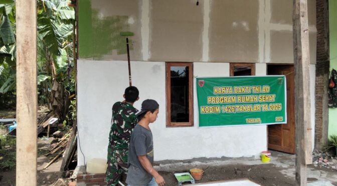 TAKALAR – Karya Bakti TNI Program rumah sehat Tahun 2025, Kodim 1426/Takalar bekerja sama dengan Pemda Takalar melaksanakan kegiatan sosial rehab Rumah Tidak Layak Huni (RTLH). Programb ini ditempatkan di rumah Sdri. Suciati Dusun Bontorita Raya Desa Bontomangape Kecamatan Galesong Kabupaten Takalar, Sabtu (01/03/2025).