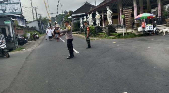 Kawal Pengabenan, Babinsa Semarapura Kaja Prioritaskan Pada Pengaturan Lalu Lintas