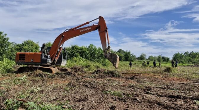 Tarakan – Satgas TNI Manunggal Membangun Desa (TMMD) ke-123 Kodim 0907/Trk terus mempercepat progres pembukaan lahan untuk Program Ketahanan Pangan (Hanpangan) di RT.21, Kelurahan Juata Permai, Kecamatan Tarakan Barat, Selasa (25/2/2025). Untuk mendukung percepatan ini, Kodim 0907/Trk mengerahkan alat berat guna mengolah lahan seluas 2 hektare yang nantinya akan dimanfaatkan sebagai lahan produktif bagi masyarakat setempat.