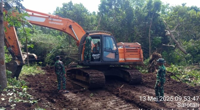 Flotim – Pelaksanaan TMMD Ke-124 Tahun 2025 di wilayah Kodim 1624/Flotim yang berlangsung di Kelurahan Sarotari, Kecamatan Larantuka, Kabupaten Flores Timur terus dikebut hingga memasuki pertengahan Mei. Salah satu sasaran utama, yakni pembukaan jalan baru sepanjang 4 kilometer dengan lebar 8 meter yang menghubungkan Kelurahan Sarotari dengan Desa Riangkemi, kini dikerjakan secara intensif dengan dukungan alat berat excavator, Selasa (13/05/2025).