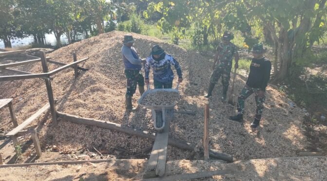 Untuk mendukung kelancaran pembangunan fisik seperti pembuatan gorong-gorong dan rehabilitasi pasar desa, Satgas memaksimalkan penggunaan alat sederhana berupa gerobak arco. Peralatan manual ini menjadi andalan dalam mengangkut material seperti batu dan pasir menuju lokasi sasaran, yang tidak dapat dijangkau oleh kendaraan berat.