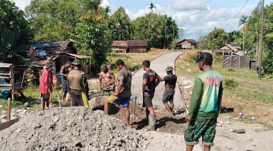 Boven Digoel – Gotong royong antara personel Satgas TMMD Ke-126 dan masyarakat Distrik Waropko menjadi pemandangan yang menginspirasi di lapangan. Dengan semangat pantang menyerah, mereka terus bahu-membahu mempercepat penyelesaian sasaran fisik, mulai dari pembangunan jalan, fasilitas MCK, hingga rumah layak huni bagi warga.