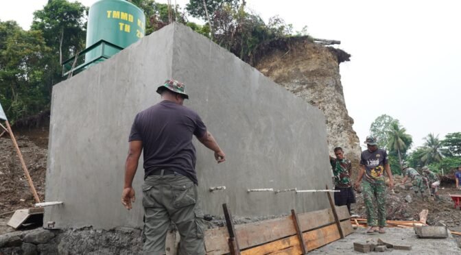 Morowali – Pembangunan bak penampungan air dalam program TMMD Ke-123 Kodim 1311/Morowali di Dusun Kajukoo, Desa Bente, Kecamatan Bungku Tengah, terus berlanjut. Saat ini, pengerjaan telah memasuki tahap pemlesteran dinding bak, yang bertujuan tidak hanya untuk memperindah tampilan, tetapi juga memastikan struktur lebih kokoh dan terhindar dari kebocoran.