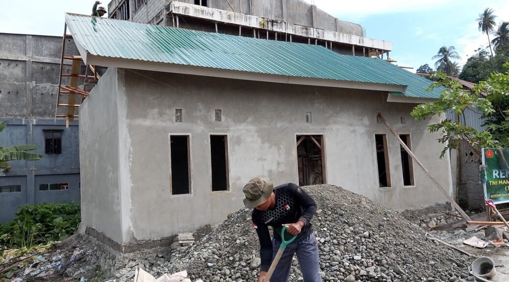 Morowali – Pembangunan Rumah Tidak Layak Huni (RTLH) di Desa Bahomohoni, Kecamatan Bungku Tengah, Kabupaten Morowali, terus berlanjut sebagai salah satu sasaran kegiatan TNI Manunggal Membangun Desa (TMMD) ke-123 Kodim 1311/Morowali. Saat ini, Satgas TMMD sedang melakukan persiapan pemlesteran dinding bagian dalam rumah dengan menyiapkan adukan semen dan pasir, Rabu (12/03/2025).