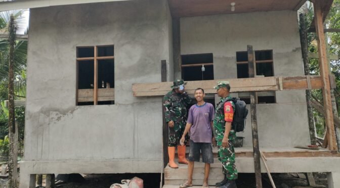 Tempuling – Pasiter Kodim 0314/Inhil, Kapten Inf Rudi Hartono, bersama Danramil 03/Tpl, Letda Arm Muchazzar, meninjau langsung progres pembangunan Rumah Layak Huni milik Mbah Silas di Desa Karya Tunas Jaya, Kecamatan Tempuling, Kabupaten Indragiri Hilir, pada Selasa (04/03/2025). Saat ini, pengerjaan rumah tersebut telah mencapai 94 persen.