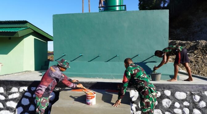 “Saat ini pembangunan bak penampungan air sudah hampir selesai, hanya tinggal tahap pengecatan sebagai sentuhan akhir. Ini adalah salah satu upaya nyata TNI dalam membantu masyarakat mendapatkan akses air bersih yang lebih baik,” ujar Letkol Inf Alzaki.