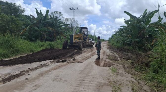 Sukamara – Proses peerbaikan badan jalan sejauh 8,06 km dari desa Nibung menuju Kecamatan Jelai dalam kegiatan TMMD reguler ke-123 Kodim 1014/Pbn telah memasuki akhir minggu kedua. Kegiatan tersebut terus berlangsung hingga ditutup pada minggu ke tiga bulan April mendatang.