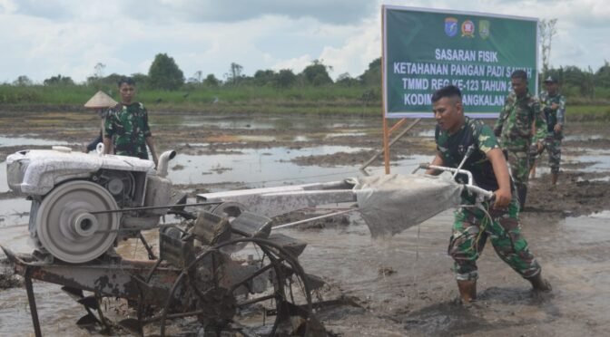 Sukamara – Program TNI Manunggal Membangun Desa (TMMD) ke-123 Tahun 2025 yang dilaksanakan oleh TNI bersama pemerintah tidak hanya berfokus pada pembangunan infrastruktur, tetapi juga menjadi bukti kepedulian terhadap kesejahteraan masyarakat di pedesaan. Salah satu bentuk kepedulian tersebut terlihat dalam aksi Satgas TMMD 123 Kodim 1014/Pbn yang membantu warga mengolah sawah di Desa Nibung, Kecamatan Sukamara, Senin (10/03/2025).