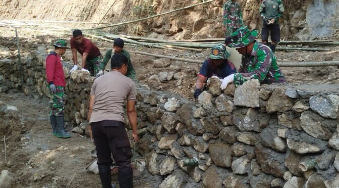 SINJAI. Sinergi antara TNI dan Polri kembali terlihat dalam program TNI Manunggal Membangun Desa (TMMD) ke-123, di mana personel dari Polsek Bulupoddo turut membantu Satgas TMMD Kodim 1424/Sinjai dalam pembangunan tanggul di sisi jalan yang berlangsung di Desa Lamatti Riawang, Kecamatan Bulupoddo, Kabupaten Sinjai, Rabu (12/3/2025).