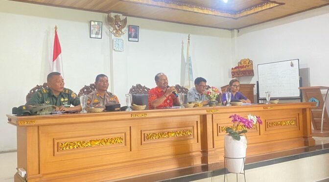 Klungkung,- Pjs Danramil 1610-03/Dawan Lettu Inf Ketut Joni menghadiri rapat pengenalan tim pembinaan terkait perlomban desa dan evaluasi perkembangan desa tahun 2025 di Ruang Rapat Kantor Desa Paksebali Kecamatan Dawan, Selasa ( 11/03/25 ).