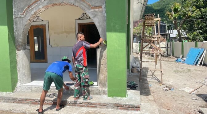 Sumbawa Barat, NTB – Memasuki hari ke-15 pelaksanaan TNI Manunggal Membangun Desa (TMMD) ke-123 tahun 2025, Kodim 1628/Sumbawa Barat terus menggenjot penyelesaian rehab Masjid Nurul Iman yang berlokasi di Dusun Jorok Tiram, Desa Batu Putih, Kecamatan Taliwang, Rabu (05/03/2025). Saat ini, progres pekerjaan telah mencapai 49 persen, dengan pemasangan keramik dinding dalam masjid hampir rampung dan tahap pengecatan bagian luar mulai dilakukan.