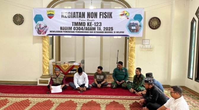 Agam – Satgas TMMD ke 123 Kodim 0304/Agam gandeng Baznas Sosialisasi membangun’ rumah Tahfidz, di kampung Hilalang, Nagari Ampek Koto, Kabupaten Agam, Sabtu, (22/2/2025).