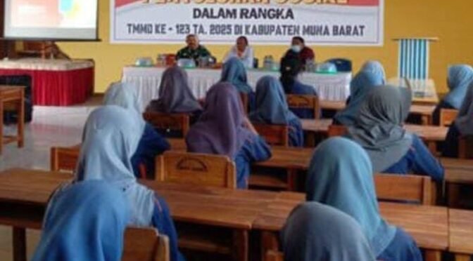 Muna Barat – Dalam rangka menanamkan semangat nasionalisme sejak dini, Satuan Tugas TNI Manunggal Membangun Desa (TMMD) ke-123 Kodim 1416/Muna menggelar penyuluhan wawasan kebangsaan bagi para pelajar SMAN 1 Tikep, Kelurahan Waumere, Kecamatan Tikep, Kabupaten Muna Barat, Senin (10/3/2025).