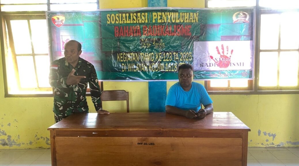 NTT – KEFAMENANU, Selasa 04 Maret 2025., Satgas TMMD Ke-123 Kodim 1618/TTU terus berkomitmen dalam menjaga keamanan dan persatuan bangsa dengan memberikan Penyuluhan Bahaya Radikalisme kepada masyarakat Desa Lanaus. Bertempat di Aula Kantor Desa Lanaus, Kecamatan Insana Tengah, kegiatan ini dihadiri oleh puluhan warga yang mengikuti penyuluhan dengan penuh antusias.